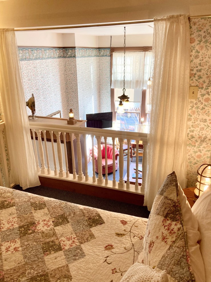 Room 15: Superior Room. Mezzanine. Historic Street View. King Bed. Full Bath. Clawfoot Tub. Mini Fridge. Microwave. Victorian Ambiance.