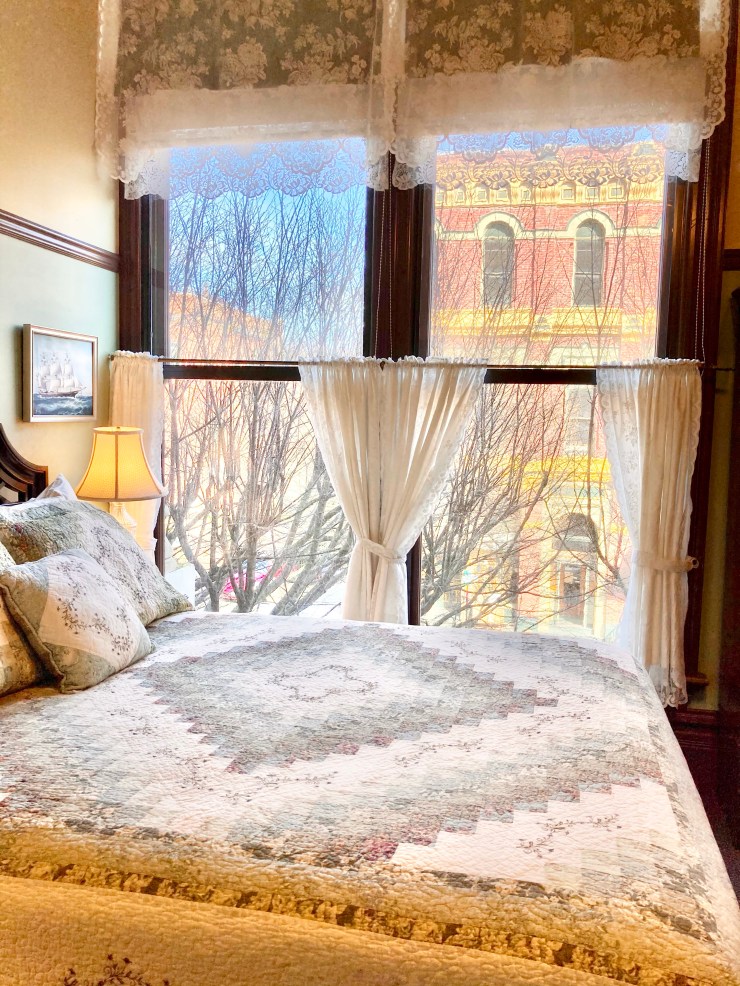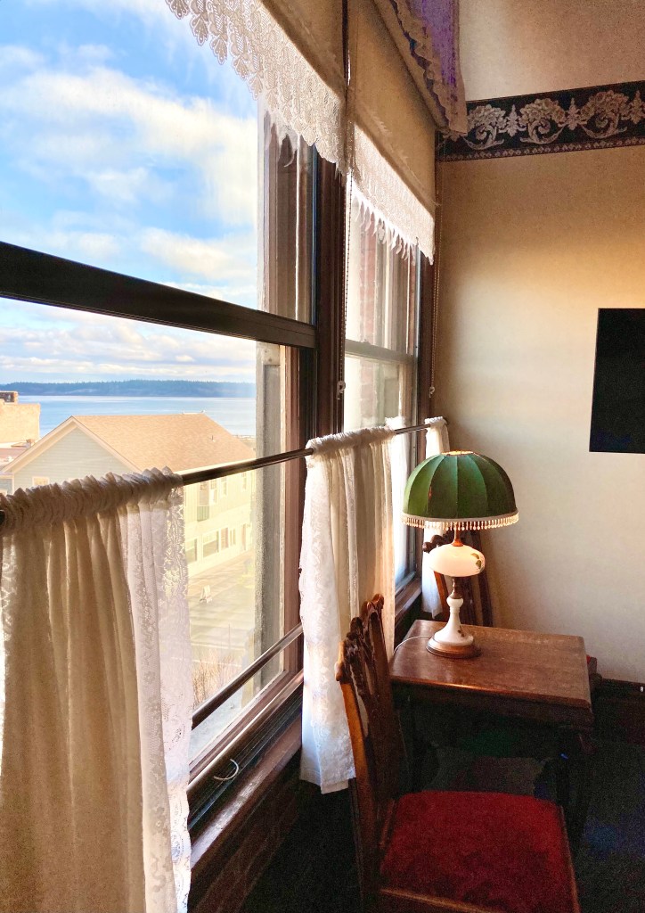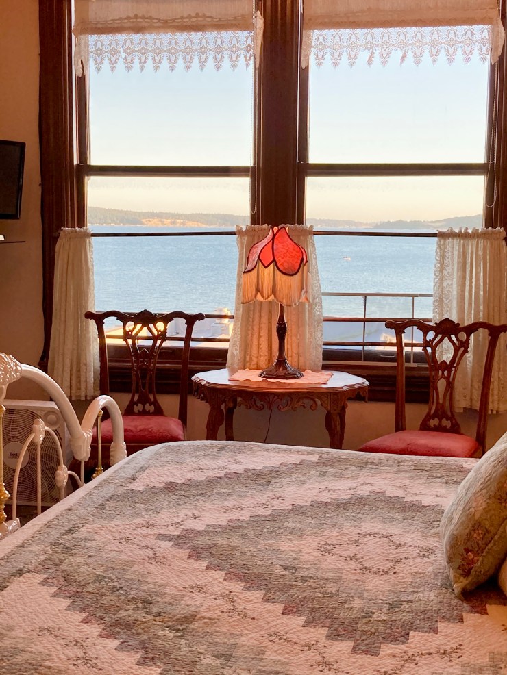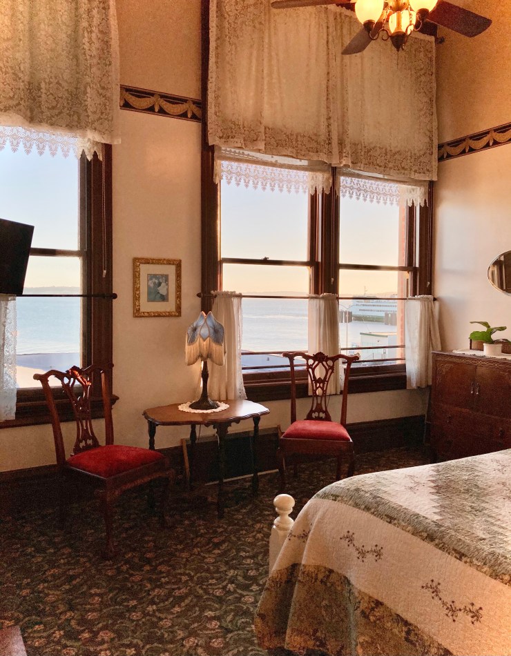 Room 11: Premium Room. 3rd Floor. Water Views in Two Directions. King Bed. Full Bath. Mini Fridge. Microwave. Victorian Ambiance.