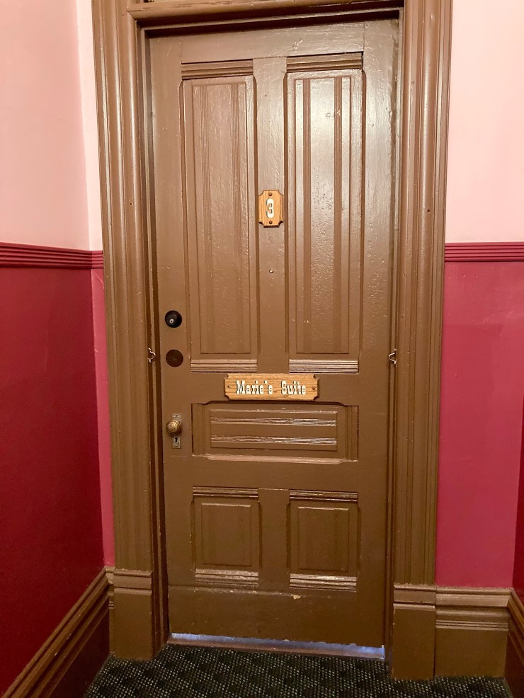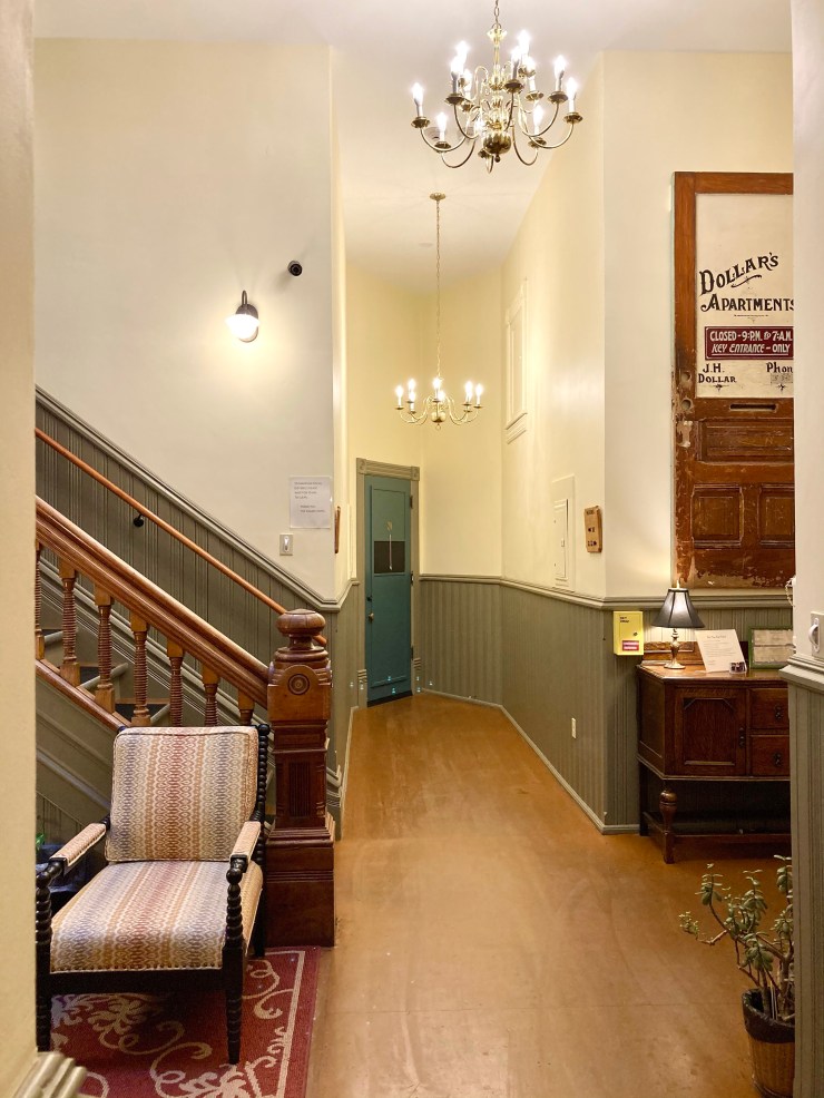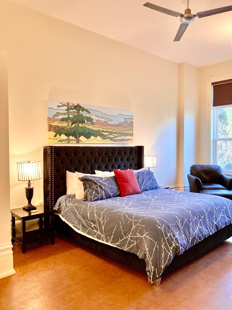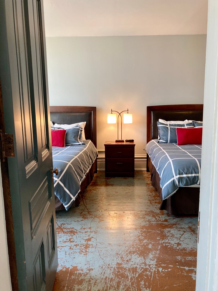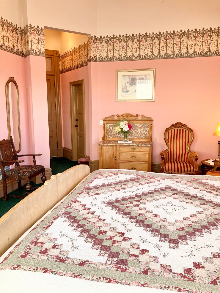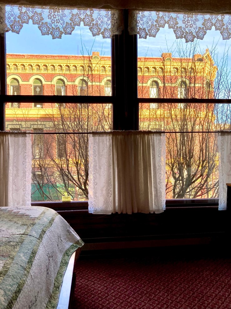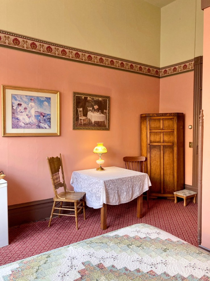 There are 26 rooms at the Palace Hotel, each is unique in layout, amenities and decor. 19 rooms are decorated with antique furnishings and have Victorian ambiance. 7 rooms are decorated in a modern “loft” style. Many rooms have full kitchens. Some rooms accommodate 4 people with two queen beds, others with an added air bed. See details below including photos of each room. Note that bedding and furniture may be different than what’s pictured here as we are likely to make changes and upgrades. With this in mind, the photos will still give you a good idea of the individual room layout, views and style.