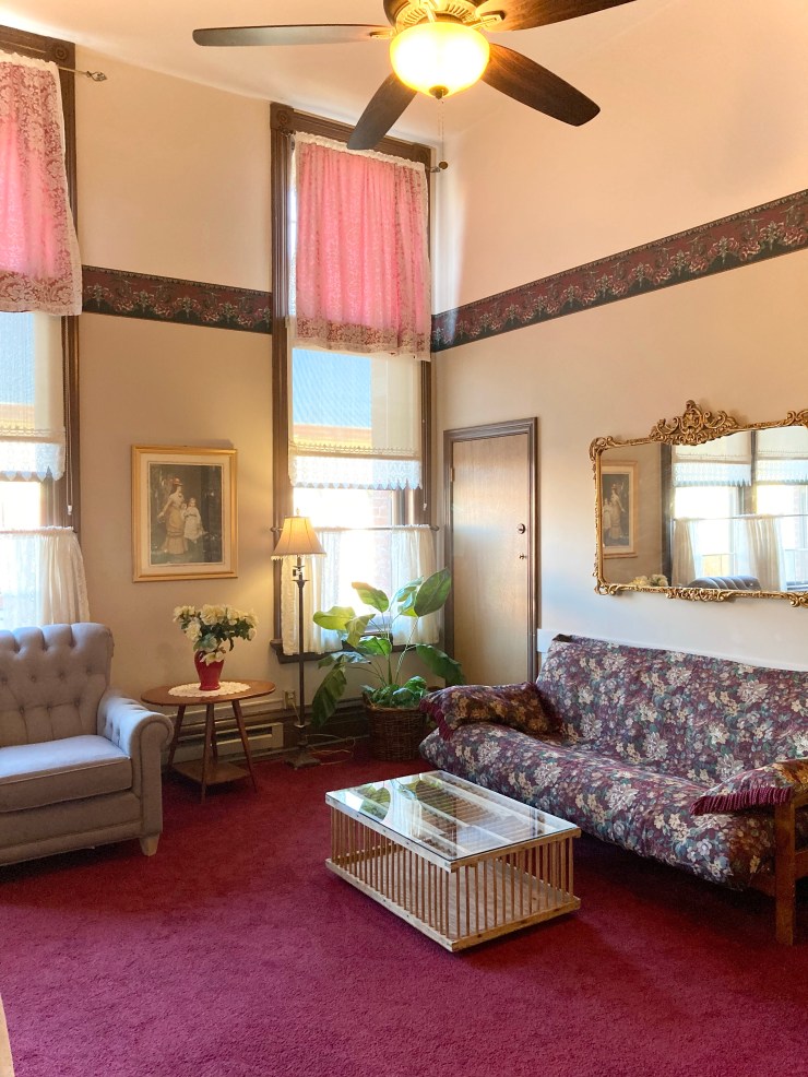 NOTE: This is a historic building with no elevator, no ground floor rooms and no air conditioning – fans are provided. Someone in the party must be 21 years of age or over.
