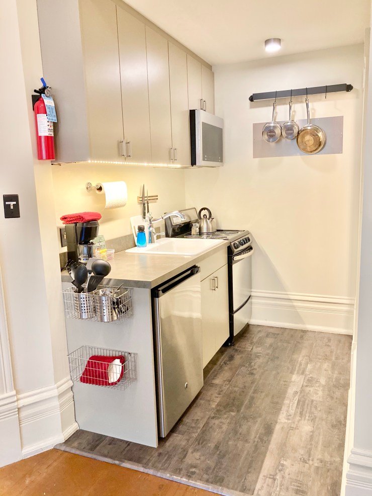 Room 8: Apartment. 3rd Floor. Historic Bell Tower View. King Bed. Separate Bedroom. TV in Living Room. Full Bath. Full Kitchen. Victorian Ambiance.