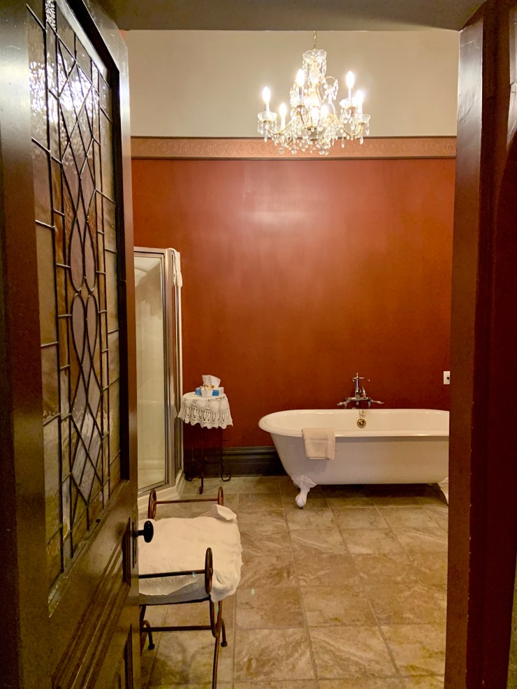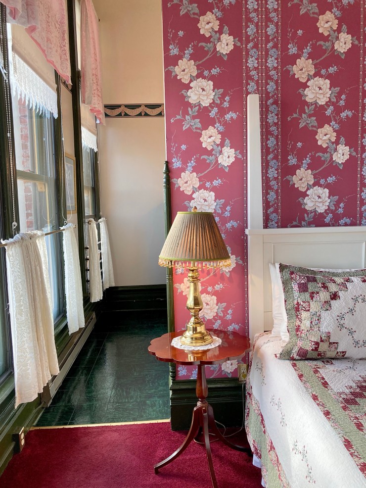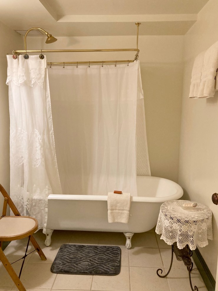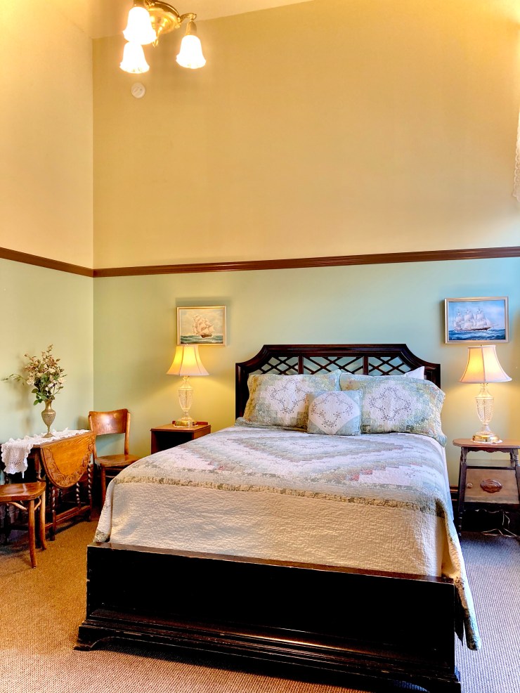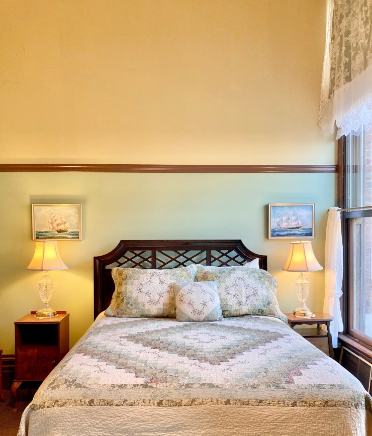 Room 10B: Best Value. 3rd Floor. Partial-Water View. Queen Bed. Detached Private Full Bath with Clawfoot Tub located down the hall. Bathrobes provided. Mini Fridge. Microwave. Victorian Ambiance.